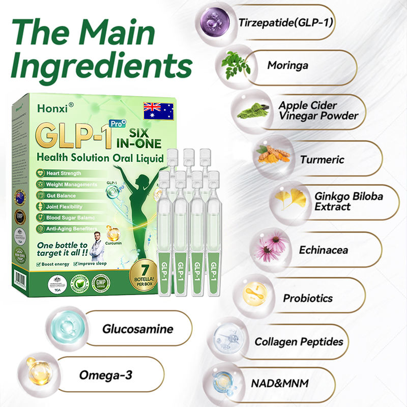 Honxiยฎ GLP-1 Six in One Health Solution Oral Liquid was developed by a team of over 30 experts in international endocrinology and diabetology after more than 3 years of research. It combines Tirzepatide with powerful herbal ingredients to boost metabolism, accelerate fat burning, and support digestive and lymphatic health.ย This oral solution has been approved by the Therapeutic Goods Administration (TGA) of Australia for its safety and effectiveness,offering a science-backed solution for weight management and overall health.